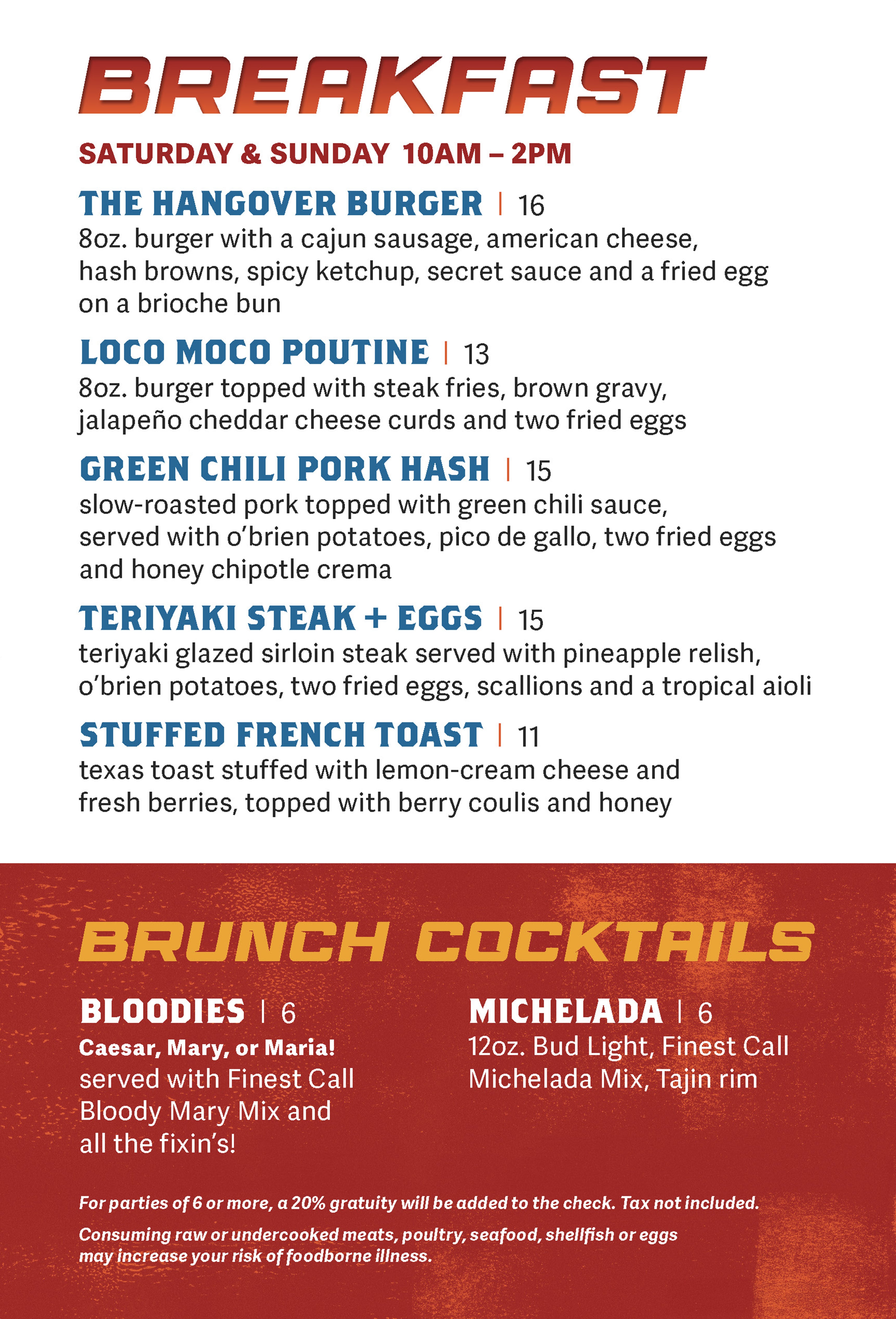 Whether you crave some wings, a juicy burger, something light or something sweet, we got a menu sure to satisfy. Plus, we often have special menus for most holidays.