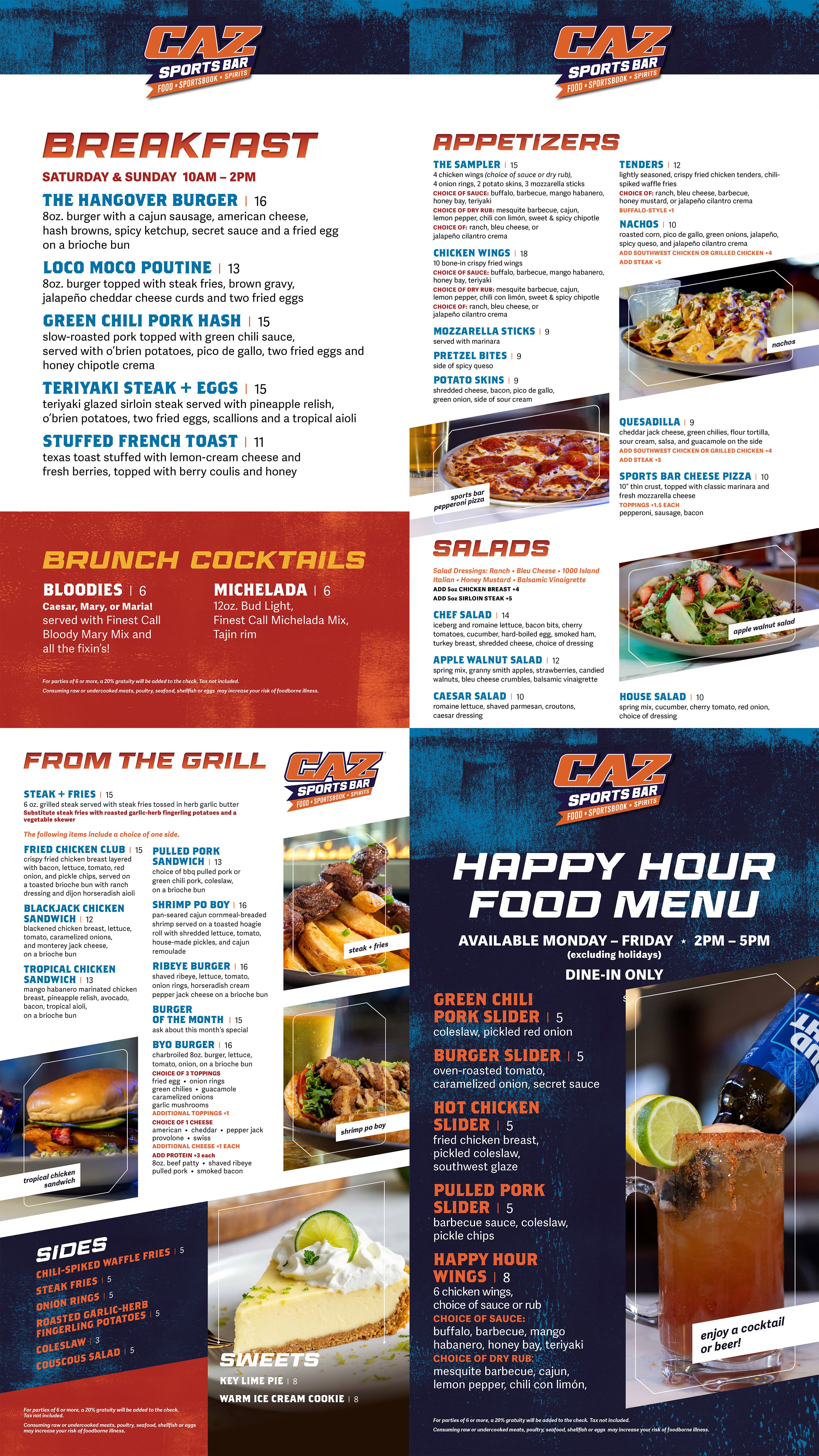 CAZ Sports Bar at Casino Arizona is far from your usual sports bar experience, CAZ Sports Bar delivers a delicious menu of fan-favorite food, two projection screens, and a huge video wall and a sportsbook to get you in the action. More sports, better food, and all your favorite drinks – you’ll never look at sports the same way again.